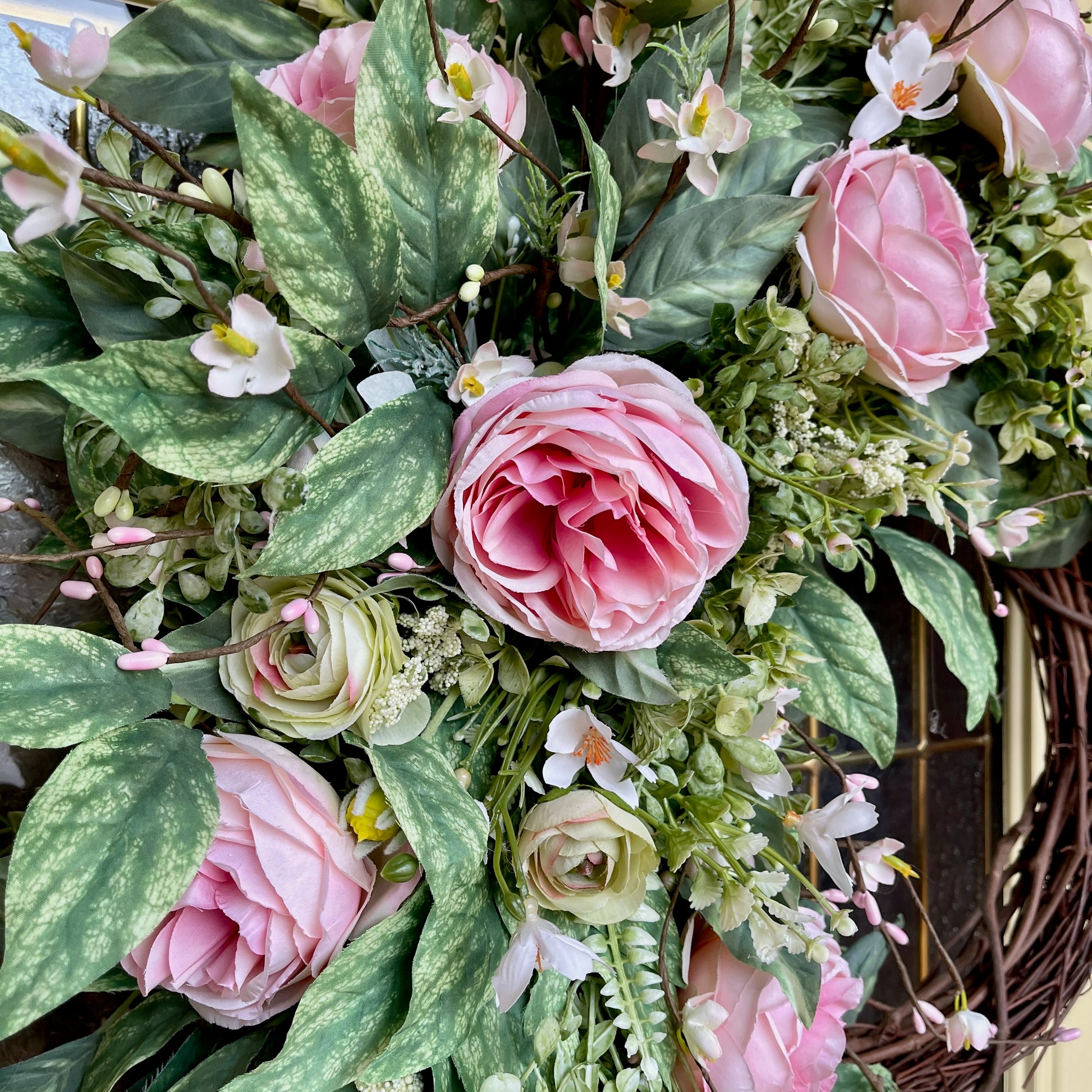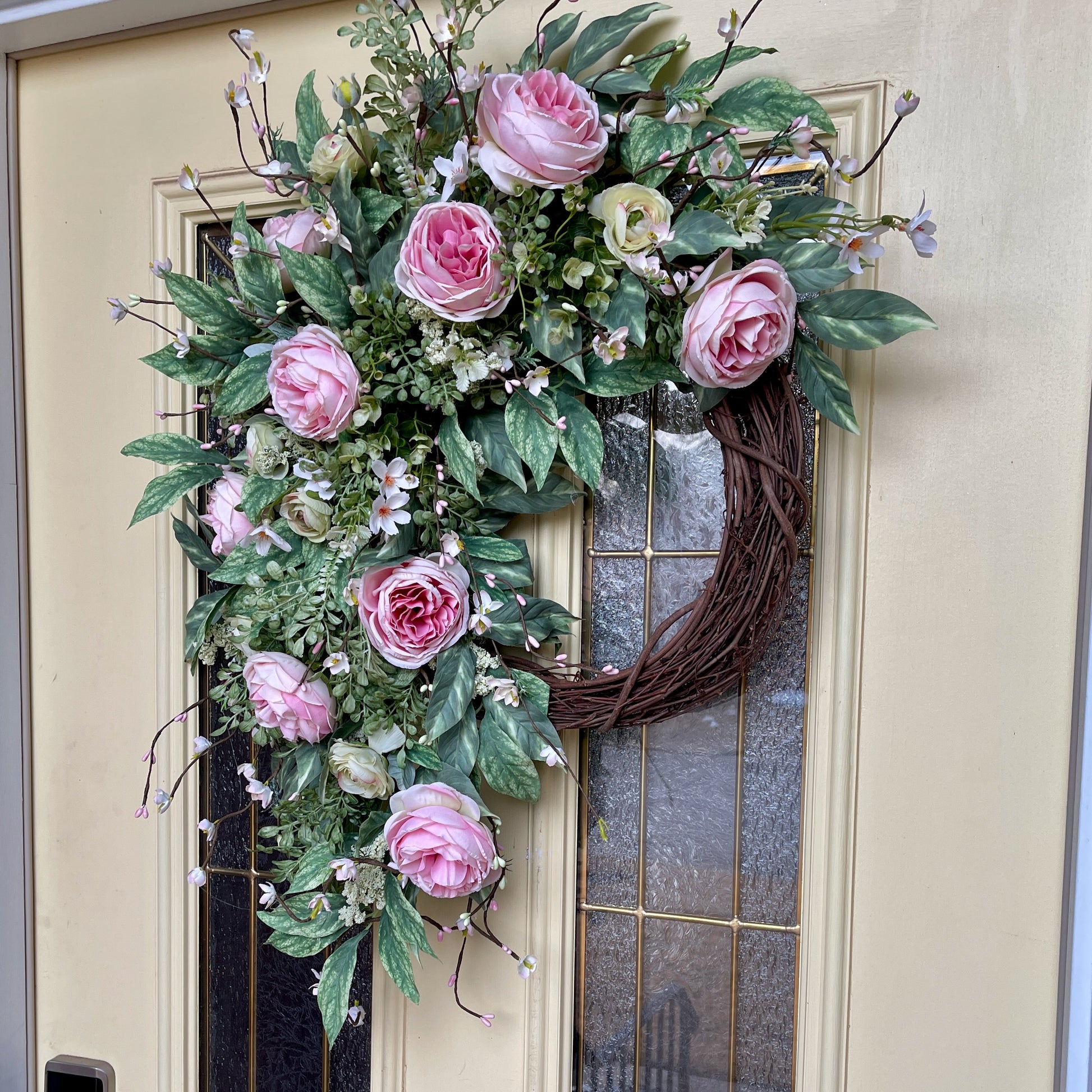 Romantic Pink Rose Grapevine Wreath | Front Door Decor for Spring