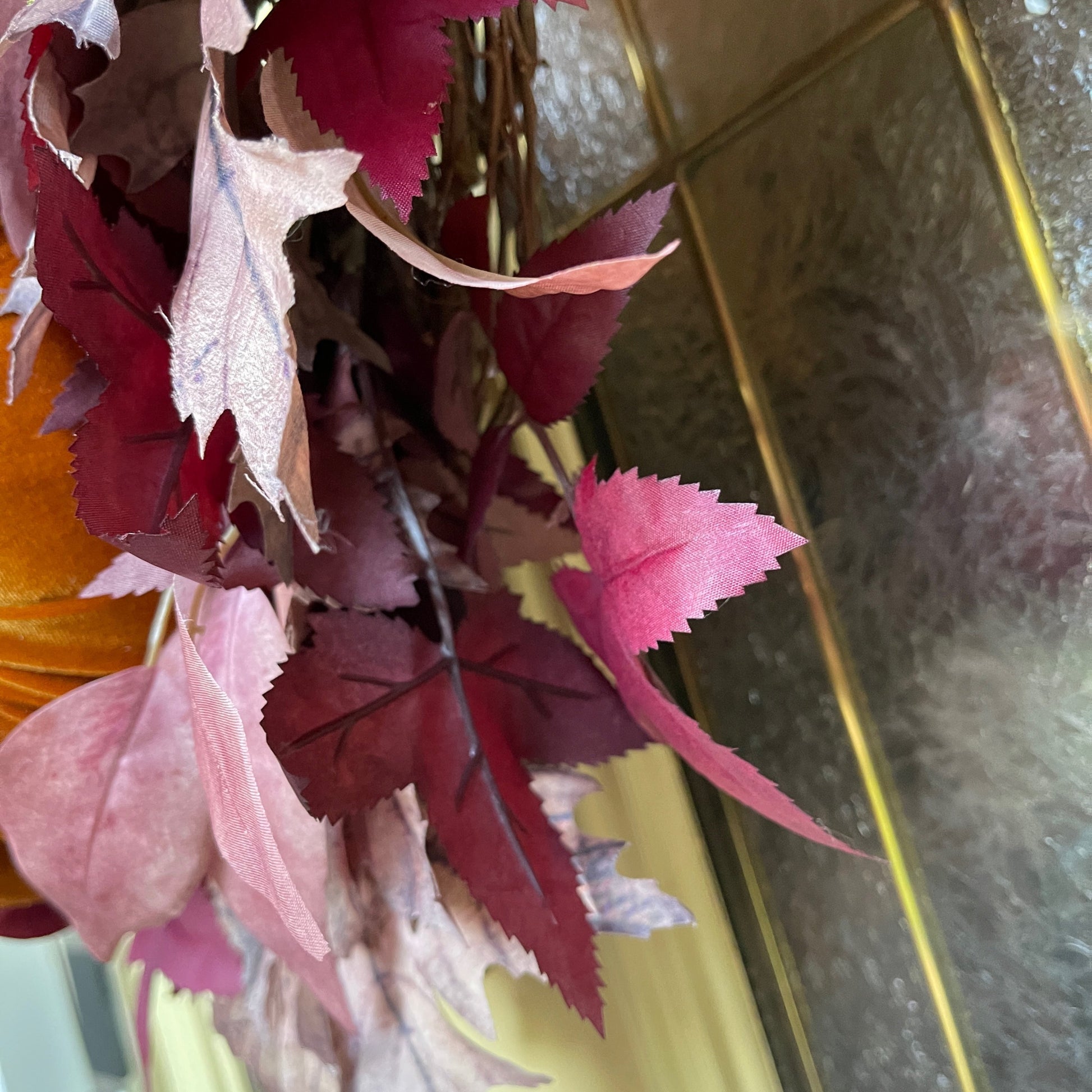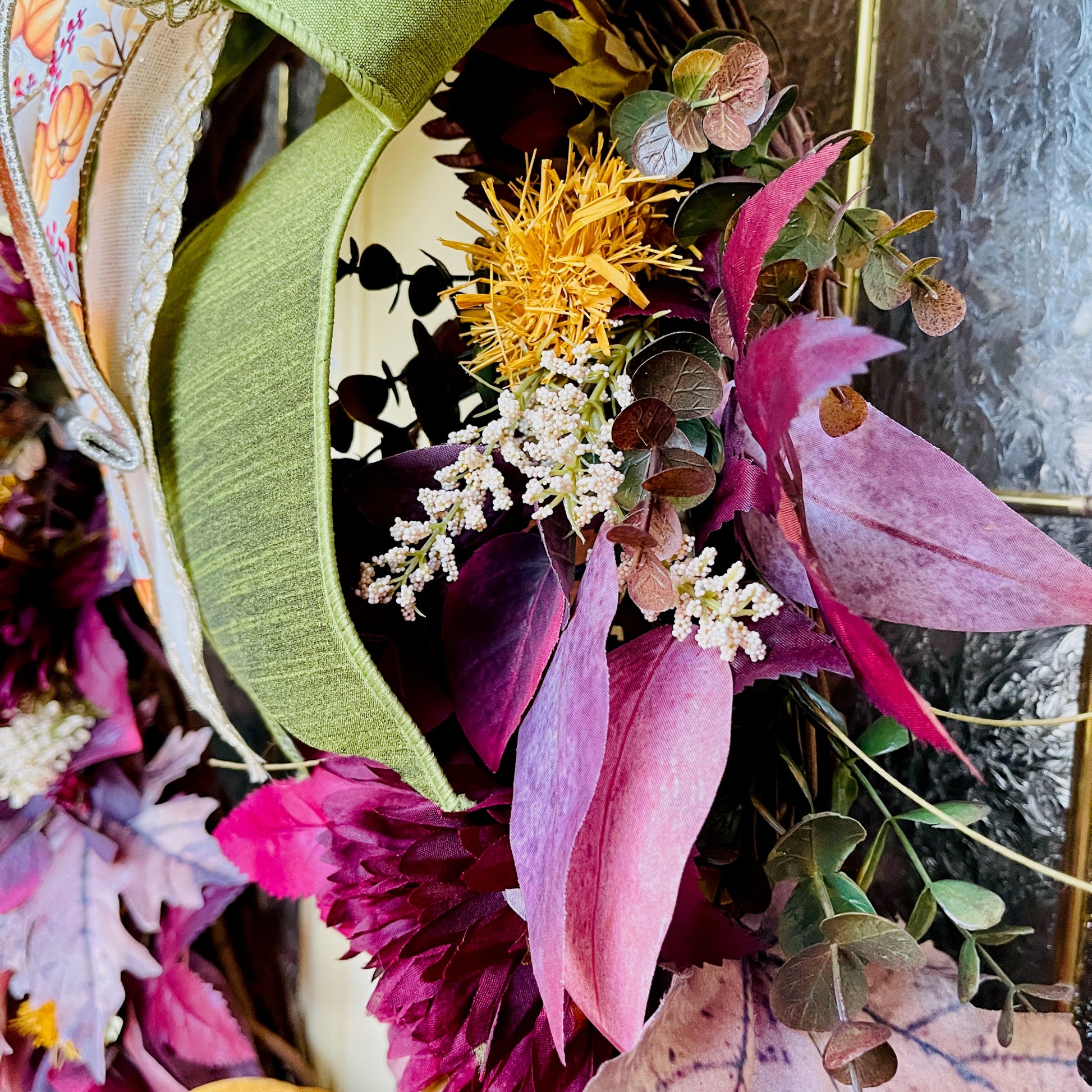 Velvet Pumpkin Fall Wreath with Plum & Burgundy Leaves | Farmhouse Thanksgiving Front Door Decor
