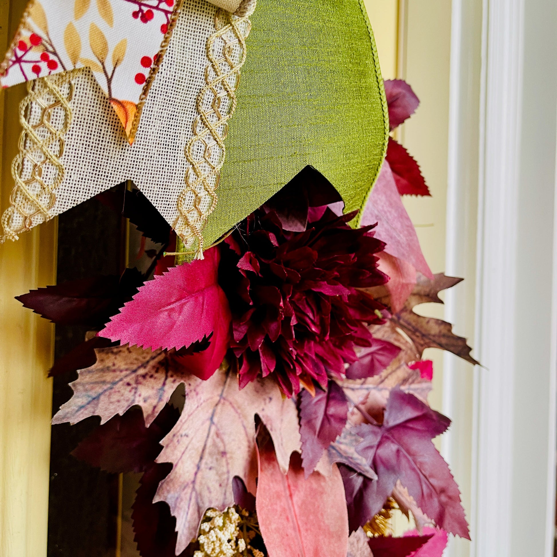 Perfect for welcoming guests at your front door, styling your entryway, or adding a seasonal accent to your Thanksgiving gatherings, this wreath brings a warm and elegant touch to any space.